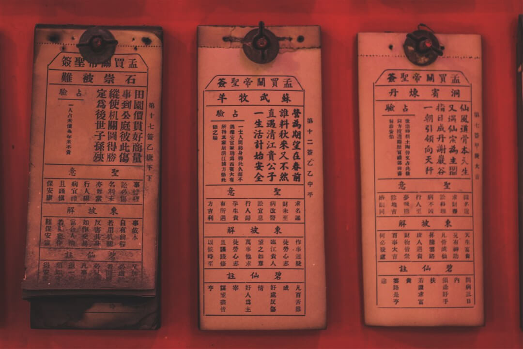 Closeups of some sheets inscribed with Chinese inscriptions.