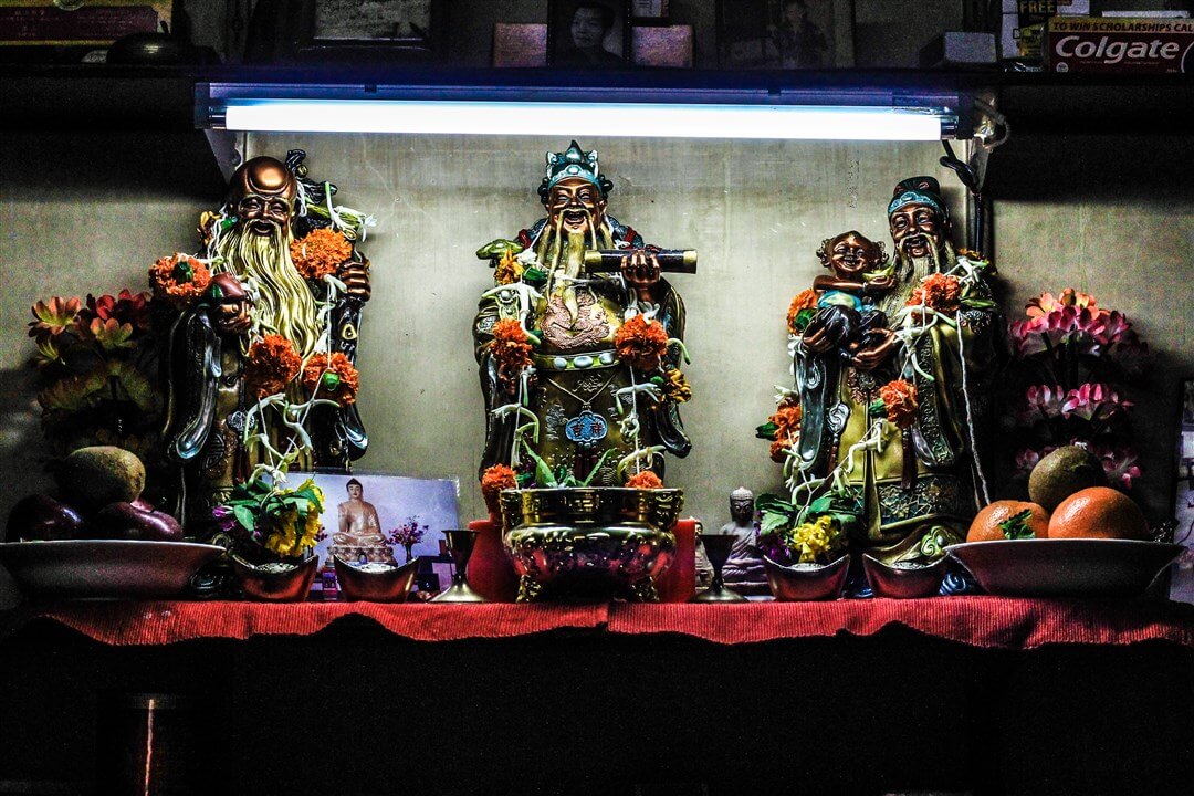 The wall adjacent to where Liao was seated housed a variety of articles. Like the tea leaves, some cosmetics, pictures of him and his family and the Three Stars.